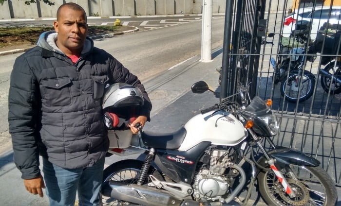 | Marcos Cardoso, motoboy há dez anos, gosta da liberdade proporcionada pela profissão |